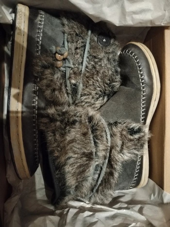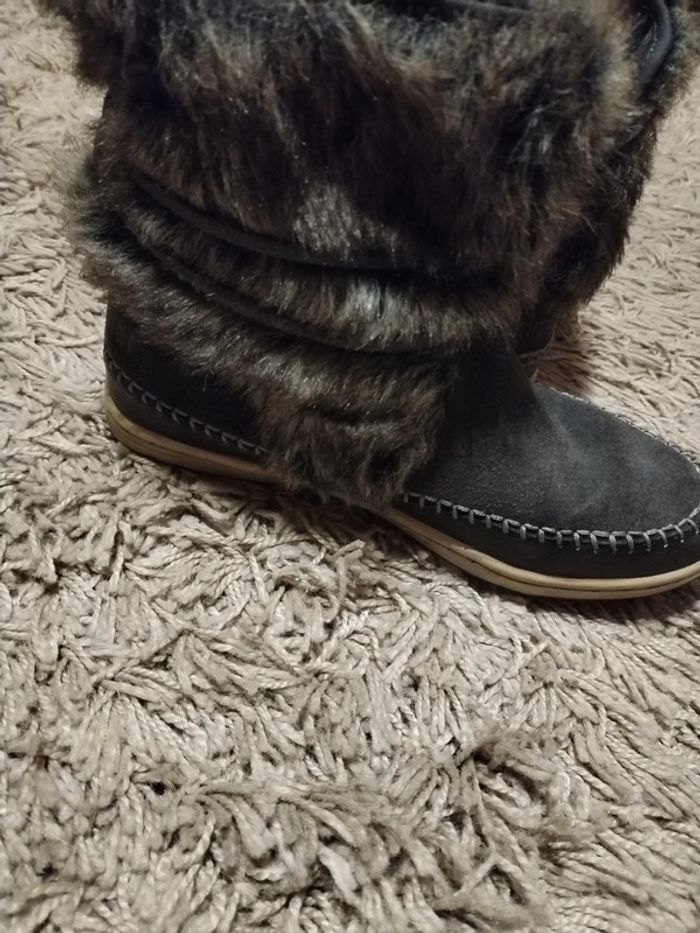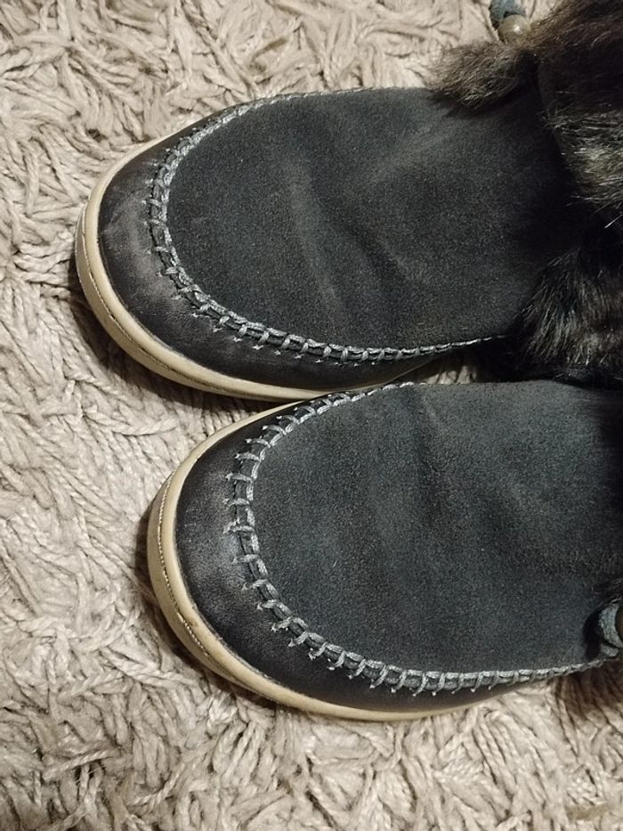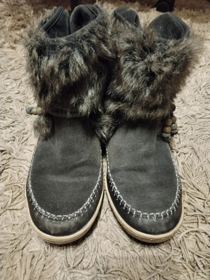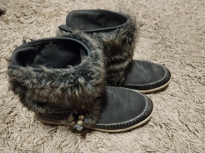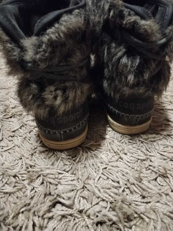 Bottines grises en cuir et nubuk. Marque : le coq sportif Taille 36. Défauts à l'avant de la chaussure : usure. Défaut au niveau de la semelle : jaunissement. Dans un non état général, idéale pour l'hiver. Raison de la vente : plus portées depuis des années. Vendu dans sa boîte d'origine.
