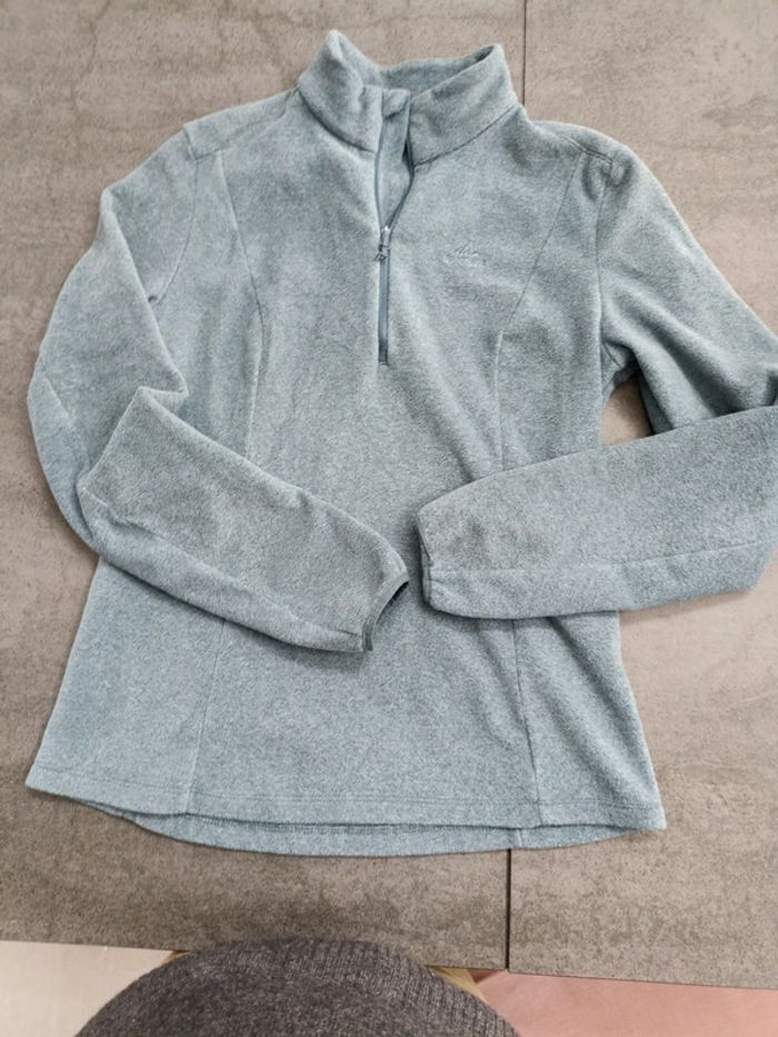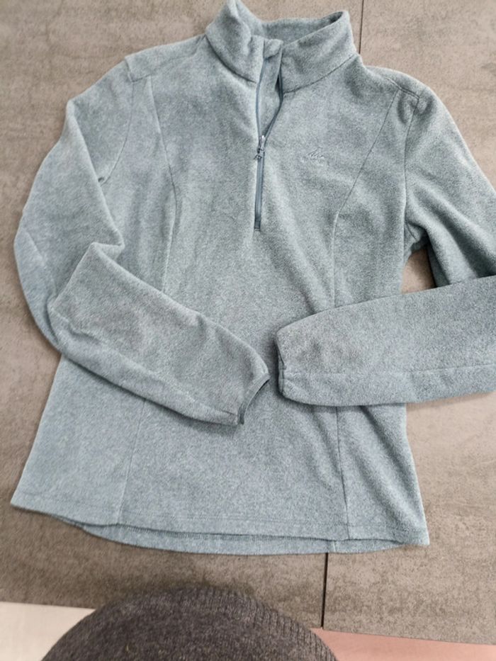 Pull polaire de chez Decathlon, assez épaisse et bien chaude, idéale pour l'hiver ou le ski. Les étiquettes ont été coupées c'est un M. Très peu porté, c'est un bleu- gris, plus joli que sur les photos. Sur les photos le pull semble gris, mais il est plus bleu en réalité. Retrouvez d'autres annonces en cliquant sur: #skimadie57 #mmadie57 #38madie57