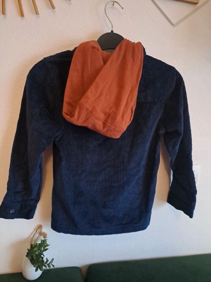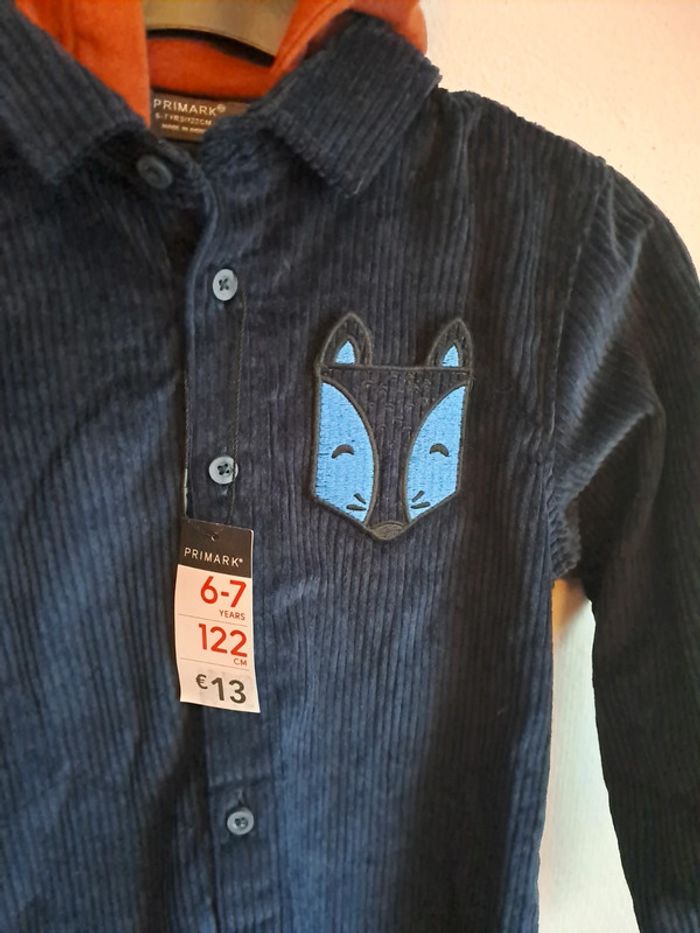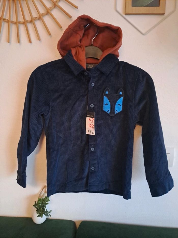 Veste blouson sur- chemise velours bleu marine poche renard capuche 6/7 ans primark neuf - photo numéro 1