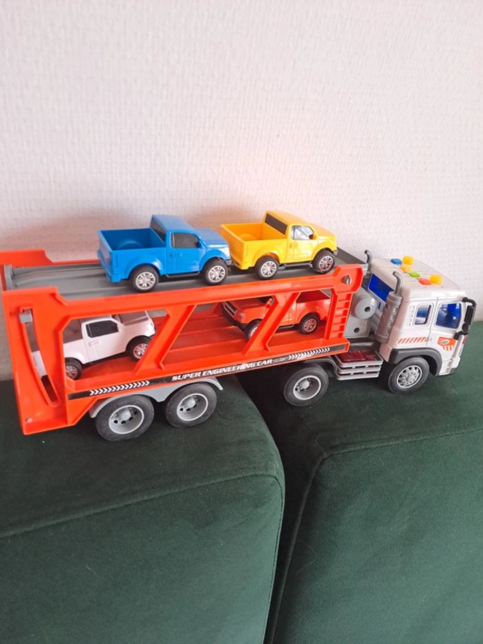 Camion transporteurs de 4 véhicules sonnore et lumineux sirène klaxon - photo numéro 1