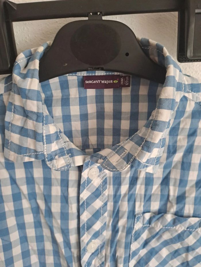 Chemise manches courtes chemisette carreaux sergent major 7 ans bleu blanc - photo numéro 5