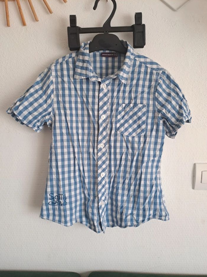 Chemise manches courtes chemisette carreaux sergent major 7 ans bleu blanc - photo numéro 1