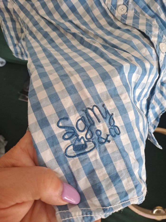Chemise manches courtes chemisette carreaux sergent major 7 ans bleu blanc - photo numéro 3
