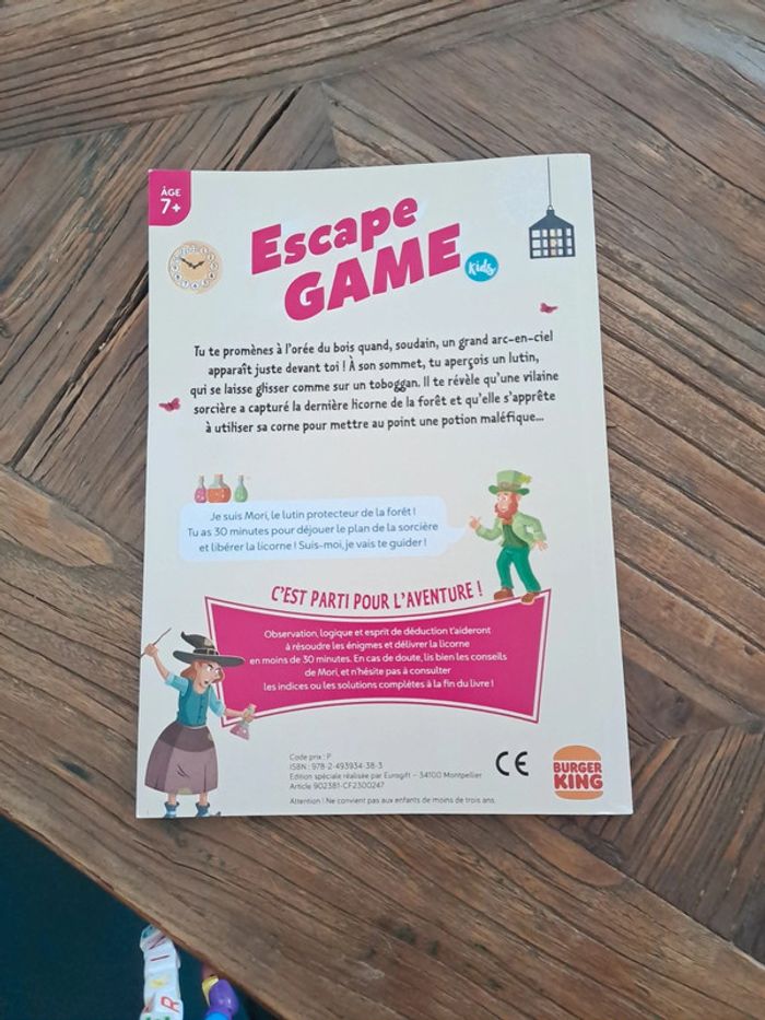 Livre eacape game libère la licorne prisonnière de la sorcière burger king