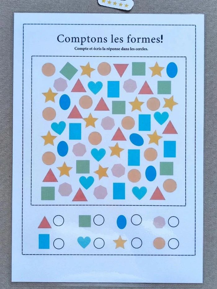 📍Compter les formes. 📍Repérer les formes. 📍Mentionner les couleurs. 📍Papier 250G. 📍Format A4 plastifié pour une bonne tenue et des écritures à l'infini. 📍Neuf. 👉Pour trouver d'autres activités c'est par ici : 🔎#elisabethdesignCompter 📫⏳ Envoi rapide et soigné le jour même de l'achat dans la mesure du possible! 🤝 Frais de port ajusté au plus bas. Ref: 1#-Lets-count/p.70