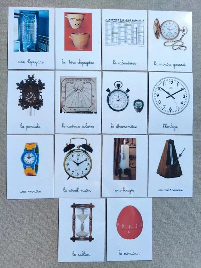 14 cartes de nomenclature recto verso des instruments du temps - photo numéro 1