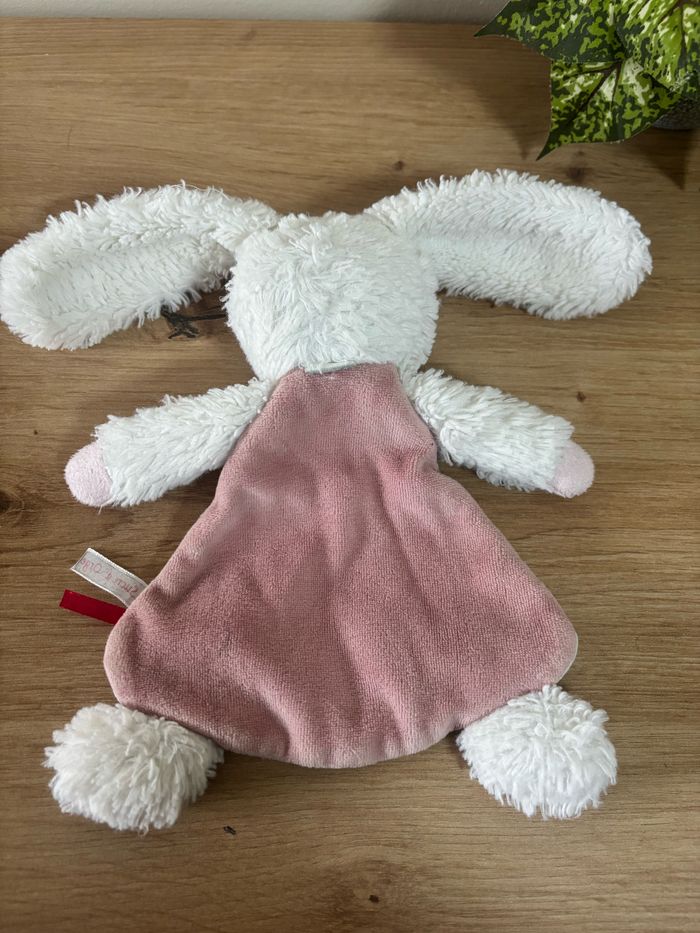 Doudou plat lapin blanc rose fleurs sucre d orge - photo numéro 1