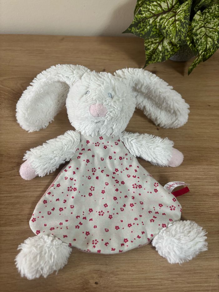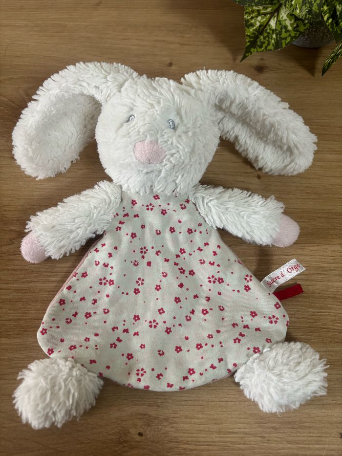 Très bon état 21 cm sans compter les oreilles Envoi rapide #doudouplatlapinblancrosesucredorge #doudouplatlapinblancrosefleursucredorge