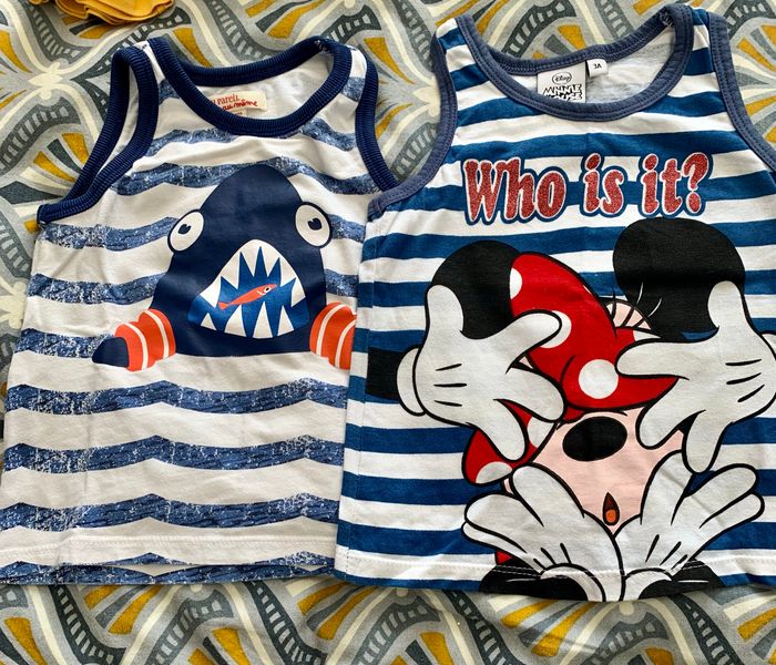 Lot de deux débardeurs ( sans manche), un disney ( indiqué en 3 ans mais taille petit) et un second DPAM Excellent état