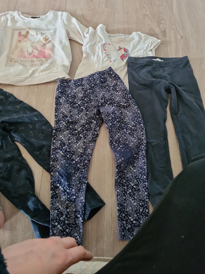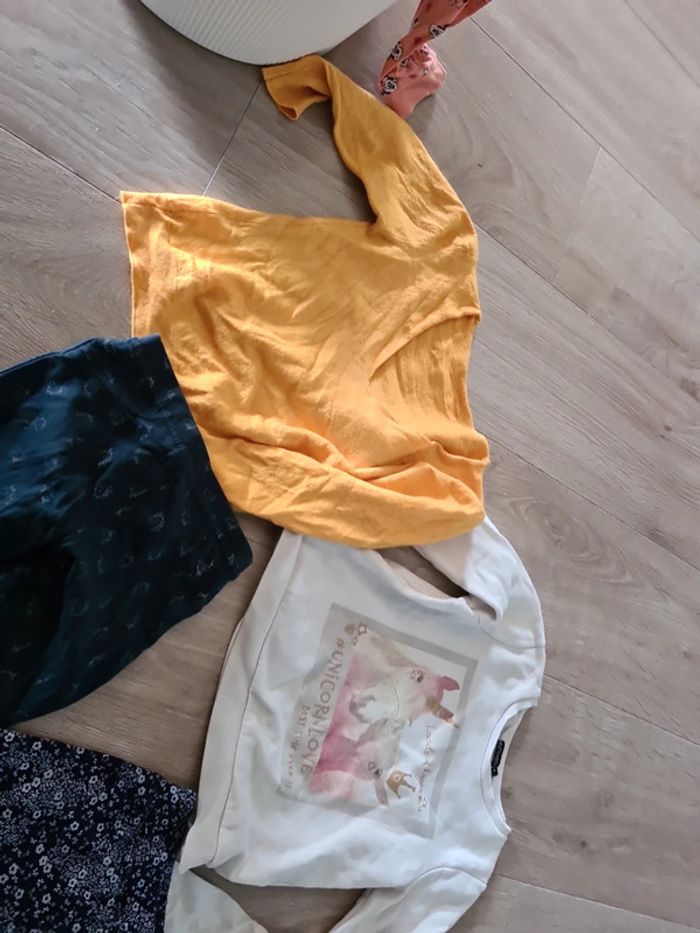 En bon état le pull jaune et un pantalon en très bon état le reste petite tache ou usure mais encore portable