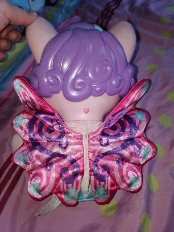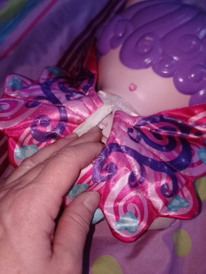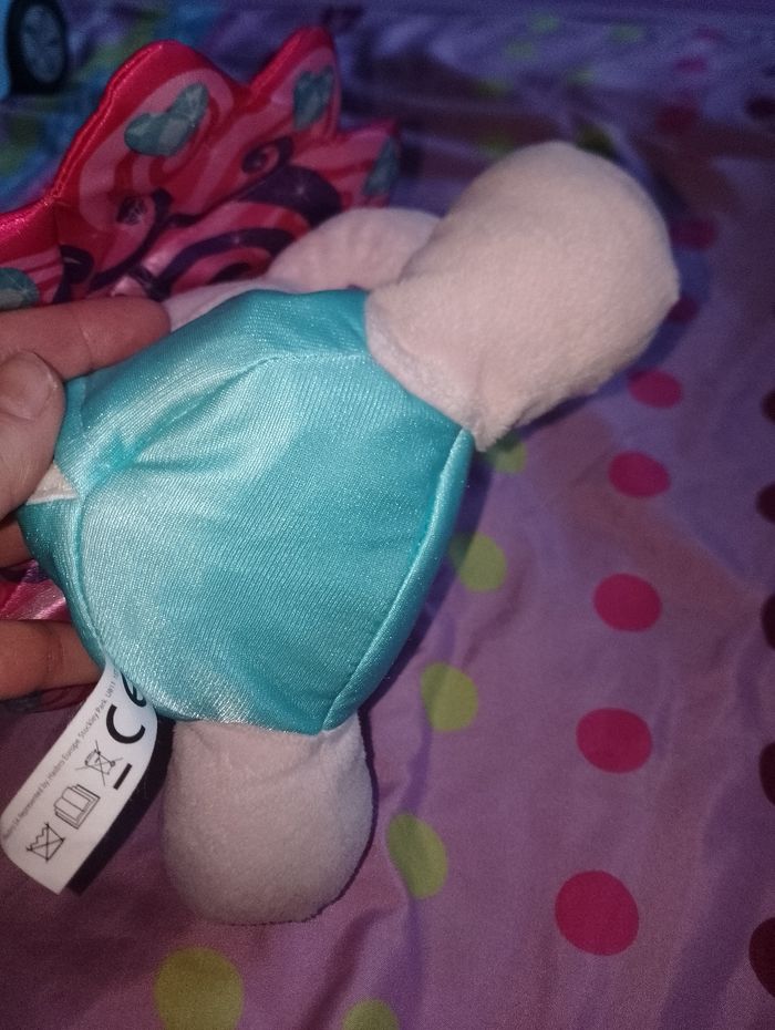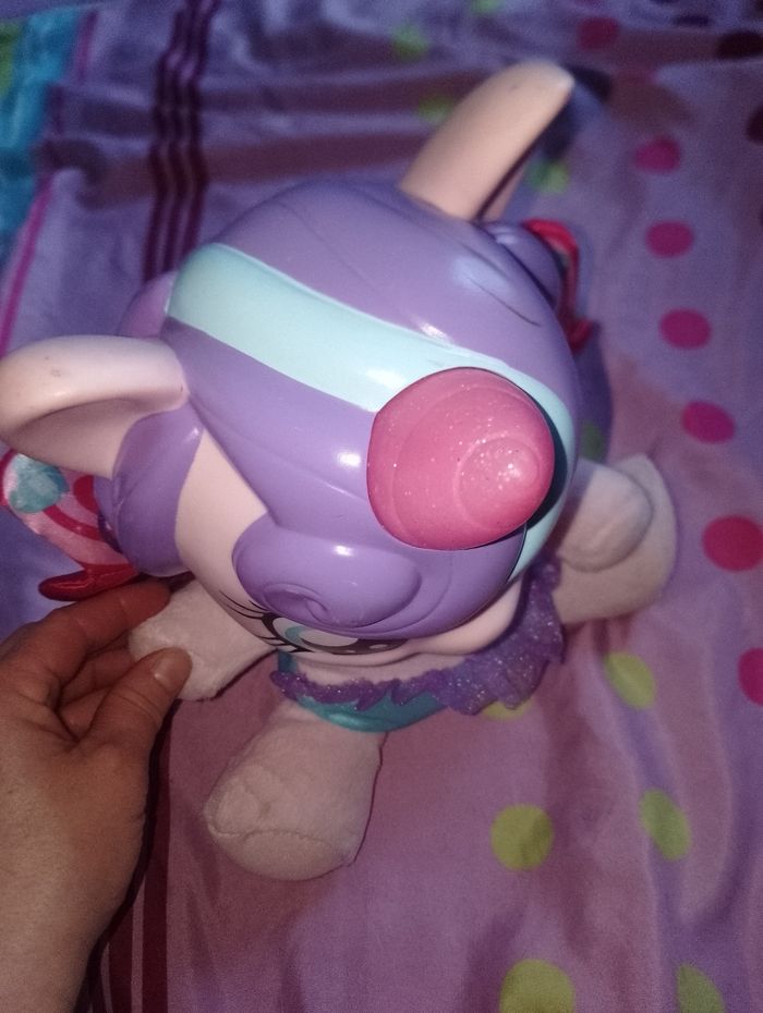Rit quand on lui appuie sur le ventre - Parle et sa corne s'illumine - Réagit au hochet inclus - Fait des bruits de bébé poney adorables - A un corps tout doux et de belles ailes