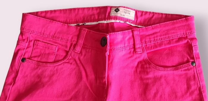 Pantalon de la marque TEX - Rose fuchsia - Coupe slim - Ouverture boutonnée et zippée - Taile : 13/14 ans - Matière : 98% coton, 2% élasthanne ❌ Neuf (jamais porté) #kat02600fille13ans #kat02600fille14ans #pantalonrose14ans #pantalonfille14ans #pantalonfille13ans #pantalonslimrosefille14ans #texfille14ans #fuchsia