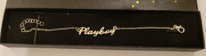 BRACELET GOURMETTE INSCRIPTION PLAYBOY ARGENTE ACIER INOXYDABLE AVEC BOITE ! NEUF ! Bracelet en ACIER INOXYDABLE livré dans sa petite boite noire et dorée. Longueur : 18 cms + 4 cms de chainette ajustable. Envoi rapide et soigné .