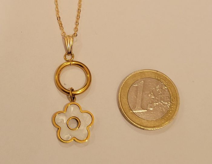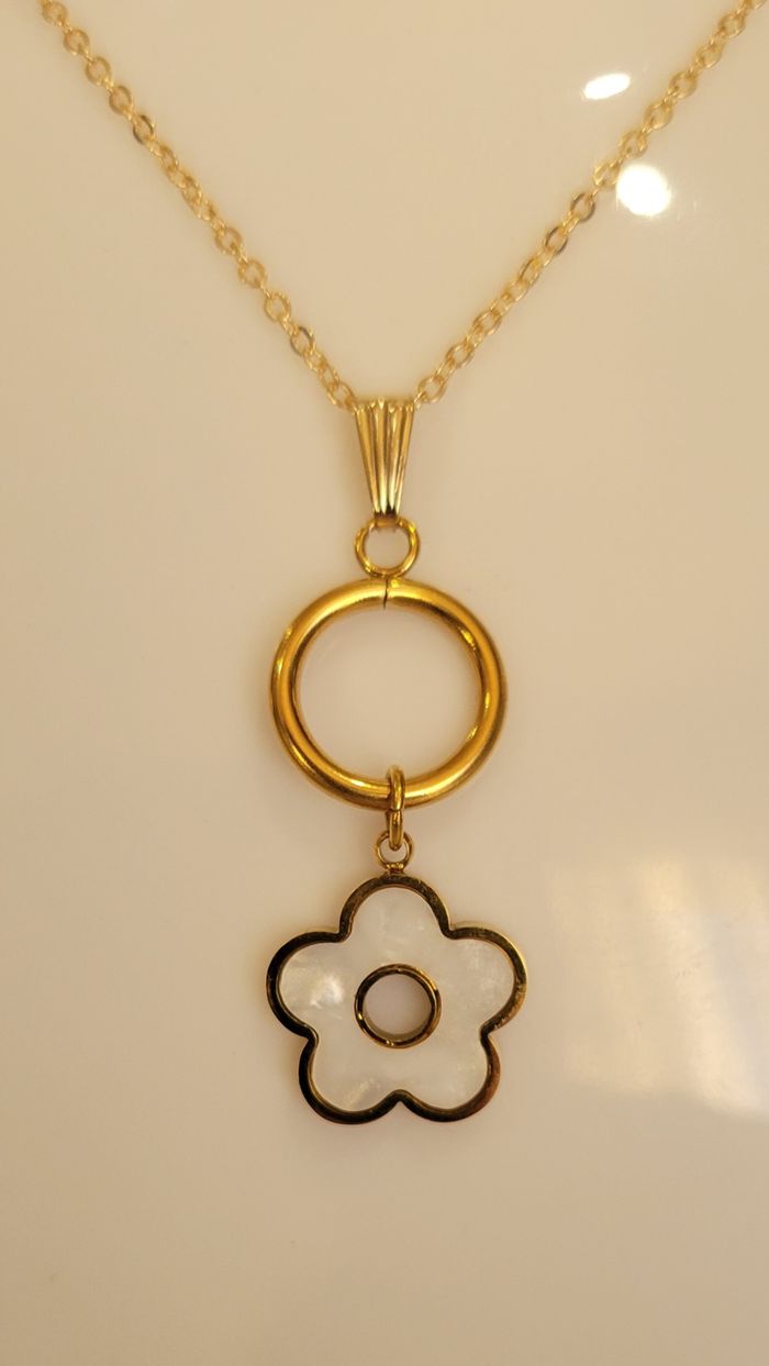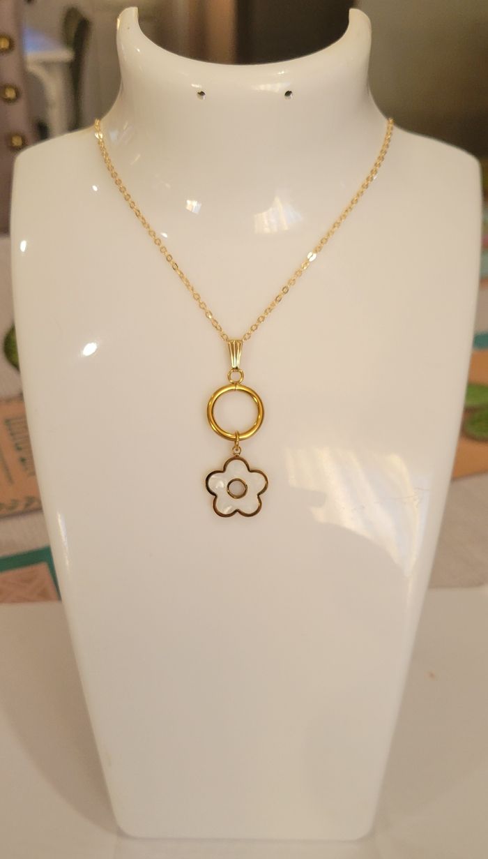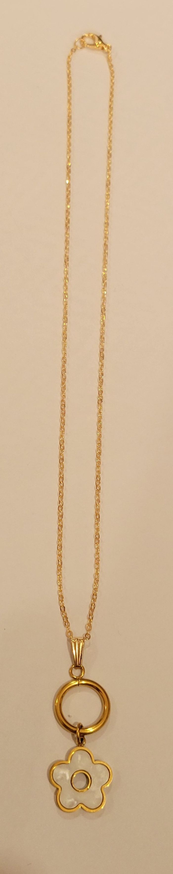 COLLIER CERCLE FLEUR BLANCHE ET DOREE ! NEUF ! - photo numéro 3