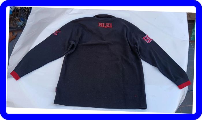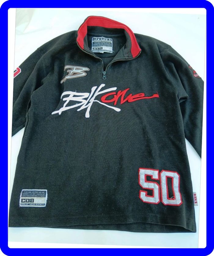Zip au cou. Tâches fluo sur les lettres blanches #pitou83710garcon12ans