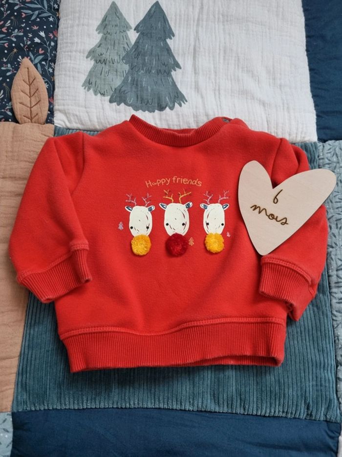 Pull style sweat rouge "Happy Friends" - Kiabi - 6 mois - photo numéro 1