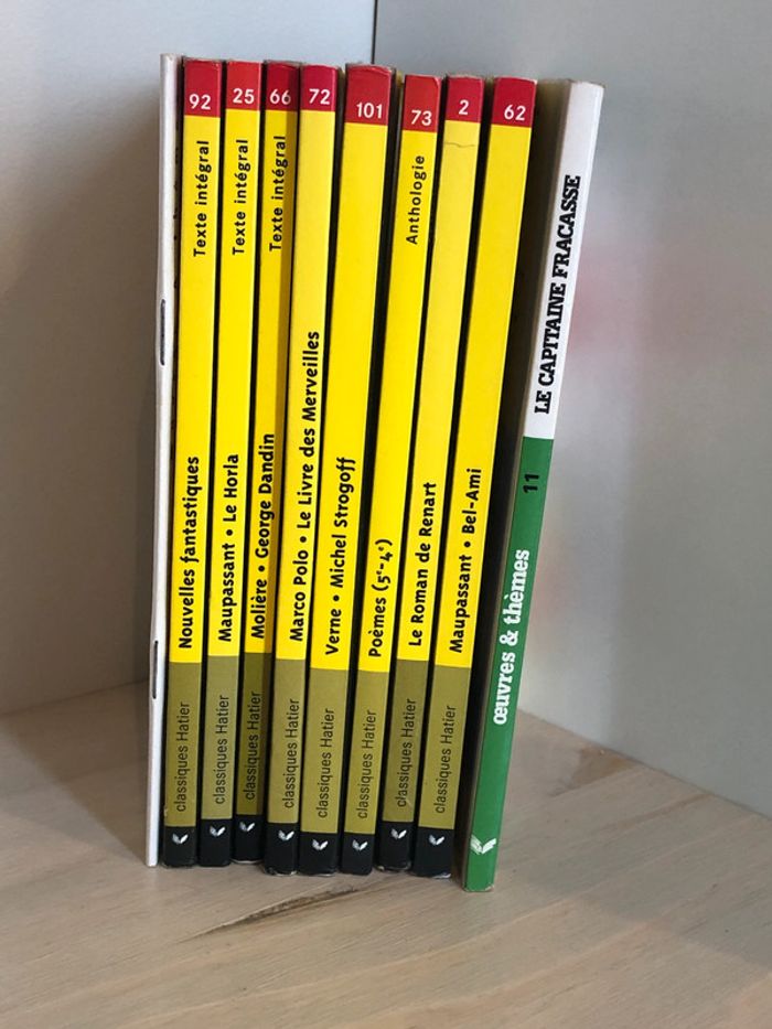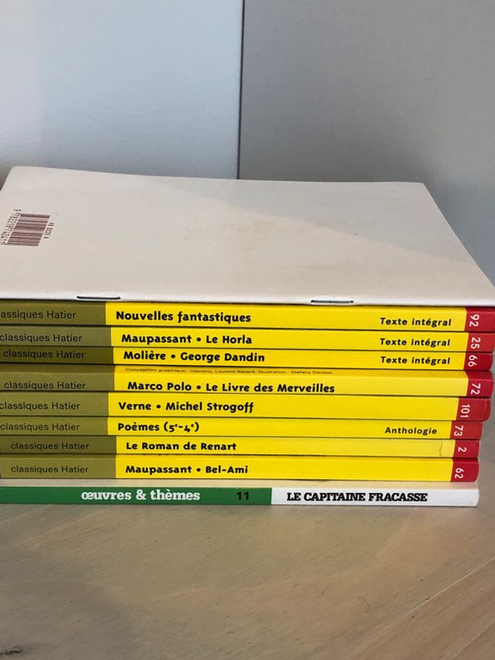 Lot de 10 livres Classiques Hatier oeuvres et thèmes - Théophile Gautier - Le Capitaine Fracasse - Guy de Maupassant - Bel ami - Le roman de Renart - Poème 5ème et 4ème - Jules Verne - Michel Strogoff - Marco Polo - Le livre des merveilles - Molière - George Dandin - Guy de Maupassant - Le Horla - Nouvelles Fantastiques + livret compléments pédagogiques de Dominique Fouquet Envoi rapide et soigné