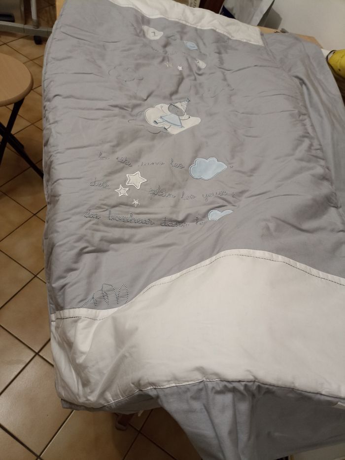 Ensemble composé d'une couette 120 par 60 + un mobile musical + un tour de lit sans la mousse)