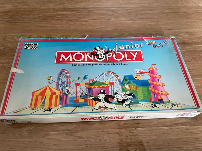Monopoly junior Parker 2 à 4 joueurs à partir de 5 ans Boîte abîmée 19/25 cartes chance sinon complet 1992 Réduction automatique sur les lots