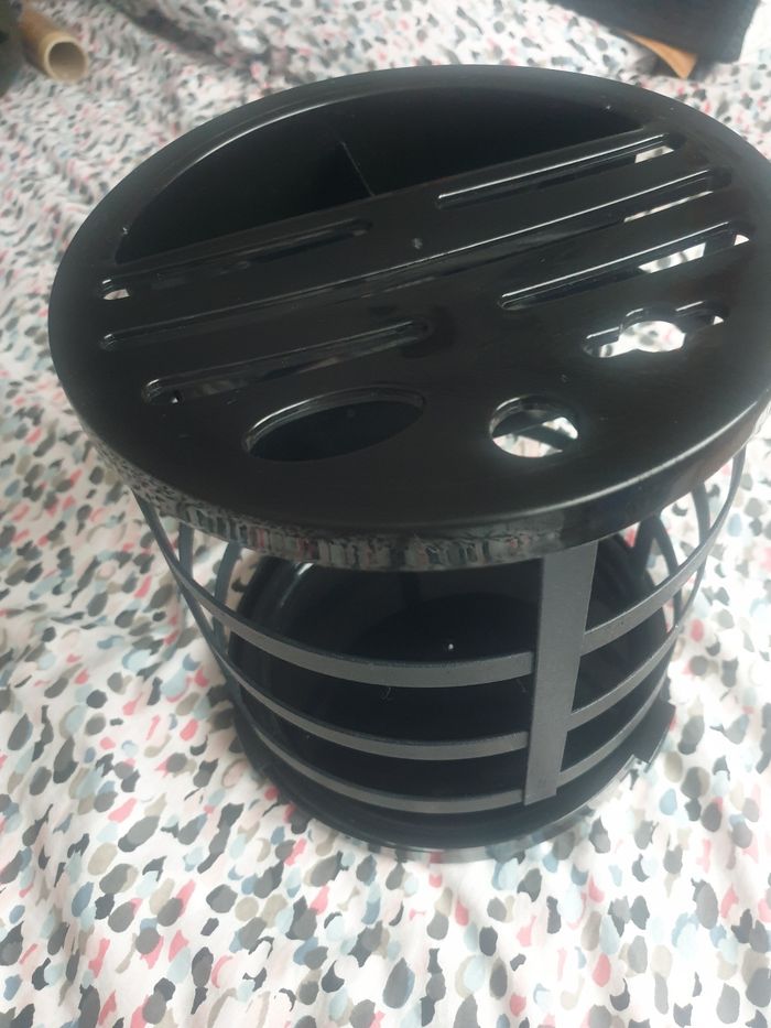 Porte couteaux couvert plastique et fer tournant impeccable Peut servir aussi d d'egoutoire bac dessous amovible .