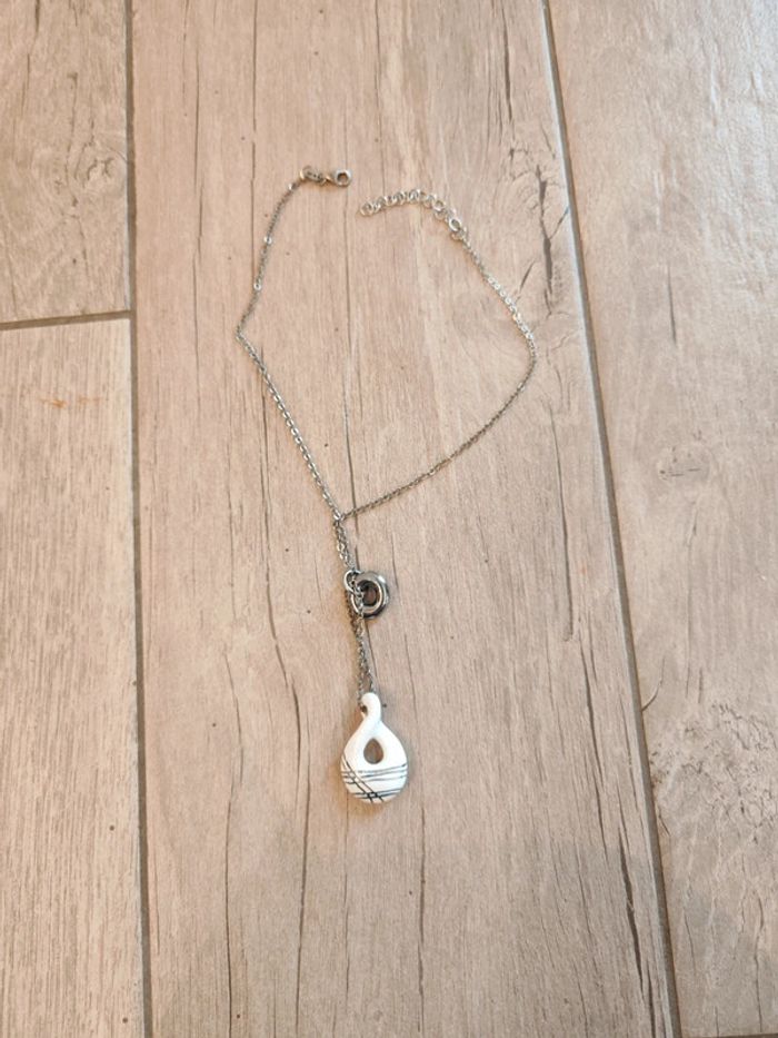 Collier argenté pendentif blanc - photo numéro 1