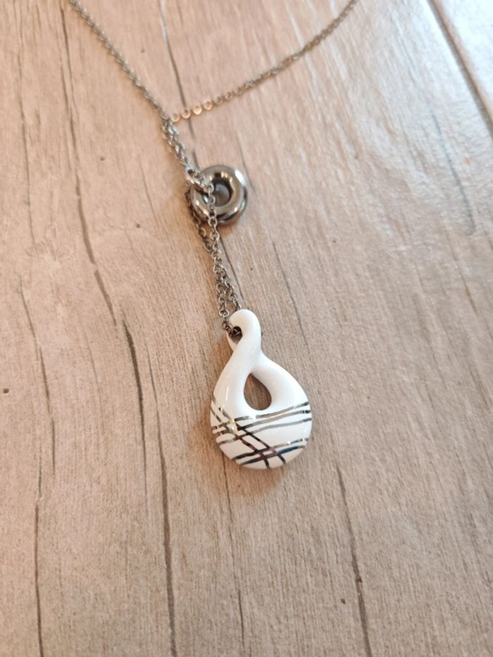 Collier argenté pendentif blanc - photo numéro 2