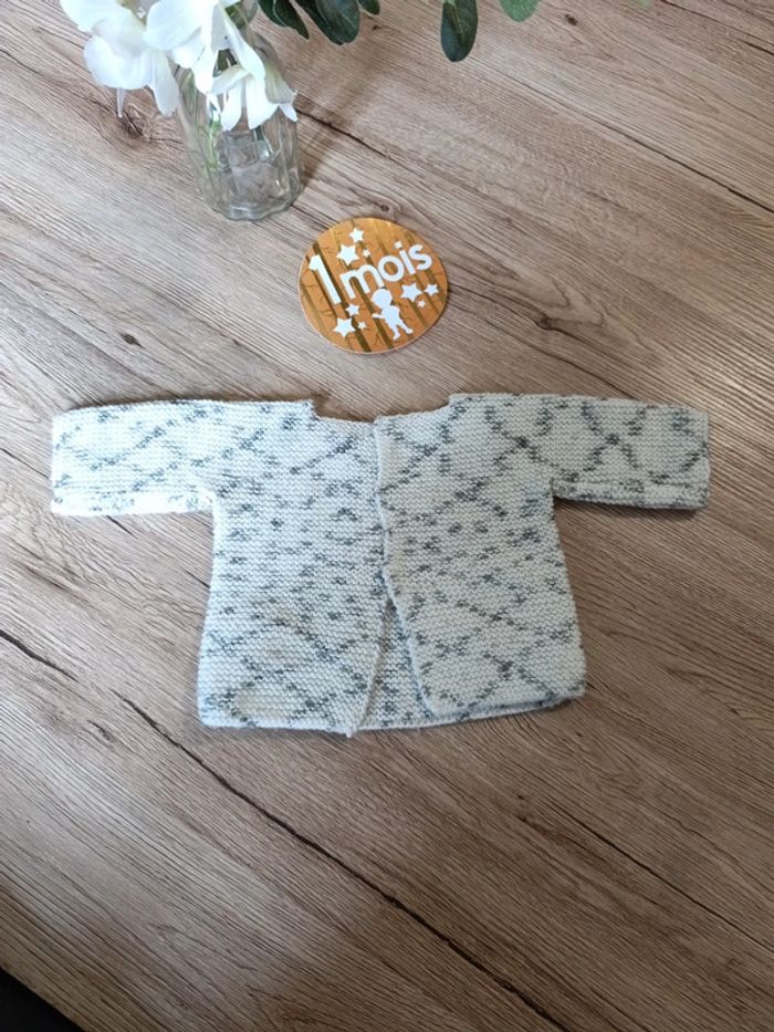 Gilet tricoté main Taille 1 mois Ouverture arrière par bouton pression Très bon état #laurianeg1mois