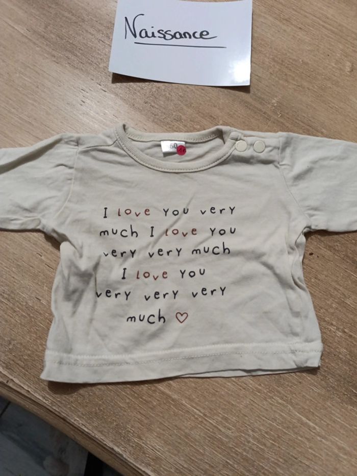 T-shirt manches longues Taille naissance Marque Zeeman Très bon état Couleur crème #laurianegnaissance