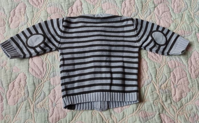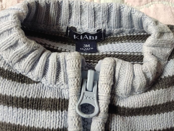 Gilet en bon état, le col a un peu jauni, sinon bon état général. Marque Kiabi. Taille 3 mois