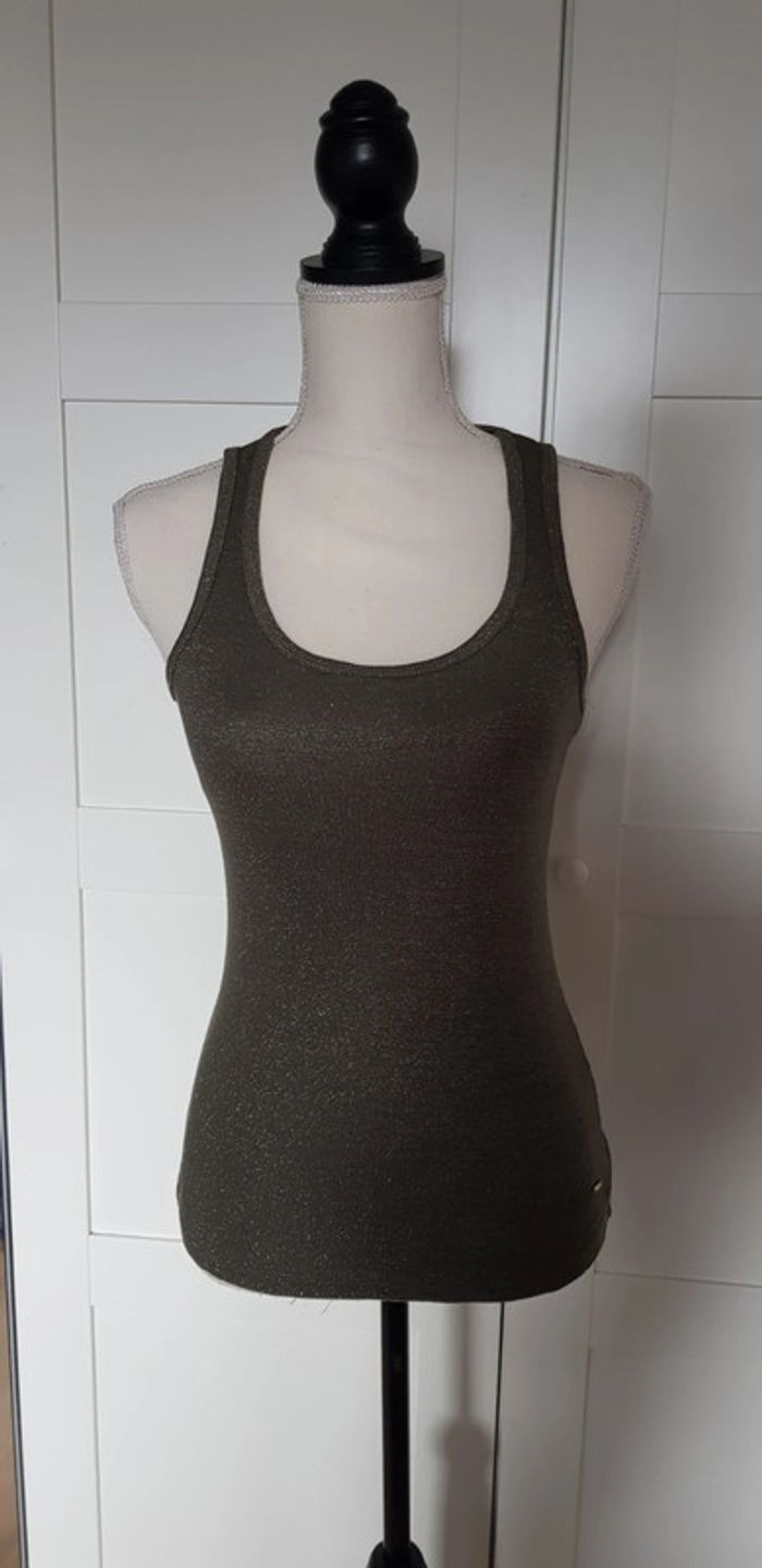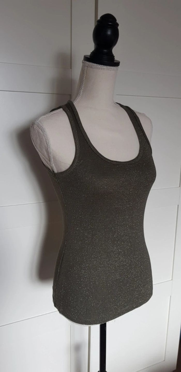 Débardeur de chez Morgan. Taille S. Couleur kaki et argenté. Très bon état !