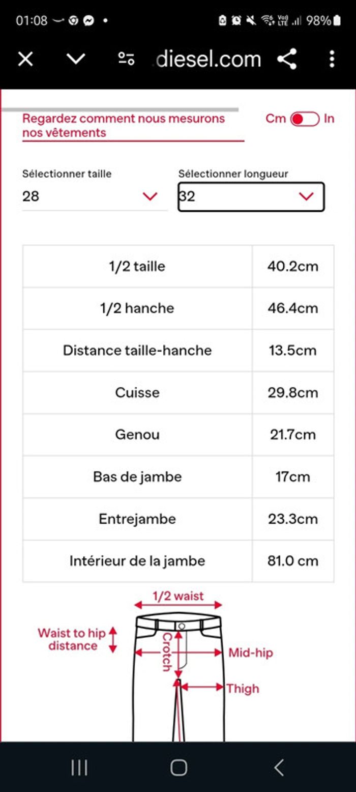 Taille 28 longueur 32 modèle trouée sur les deux genoux