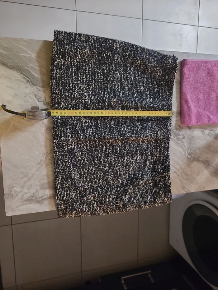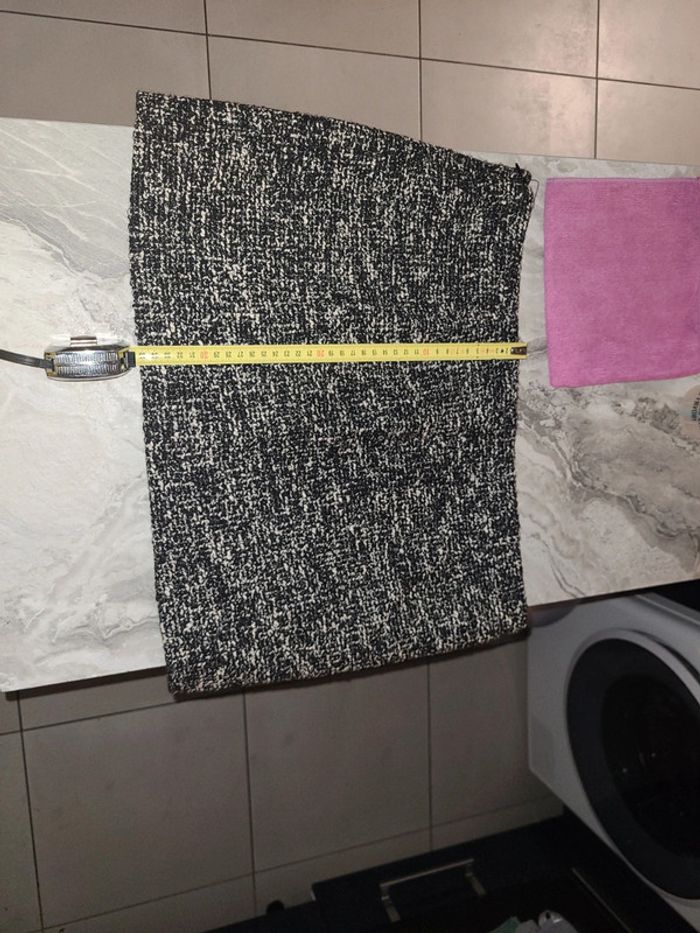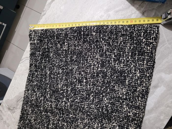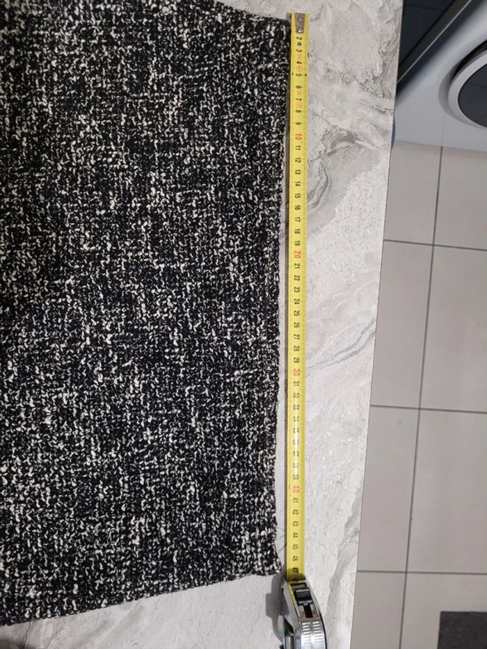 Tissu de coton mélangé. Tissu tweed. Coupe courte. Droit. Fermeture Éclair invisible sur le côté , taille L