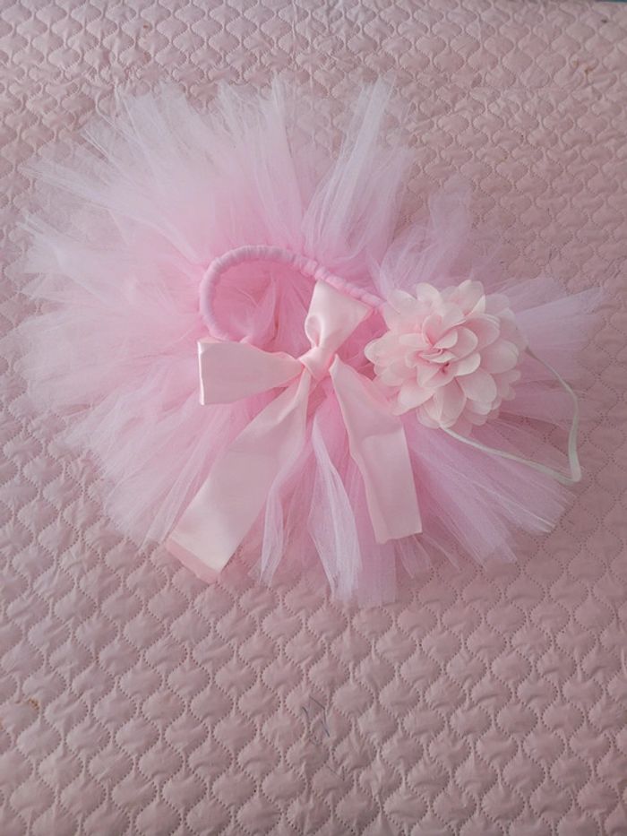 Pour des seances photos noveau nee fille jupe - bandeau rose , en excelent etat