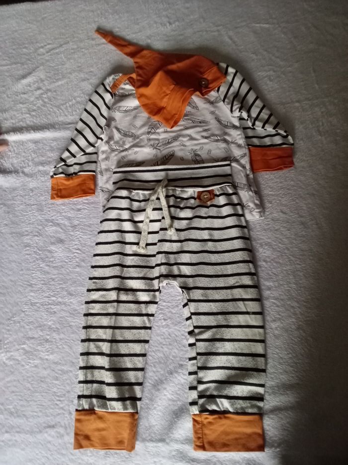 1 ensemble fin Tshirts manches longues, pantalon et bonnet