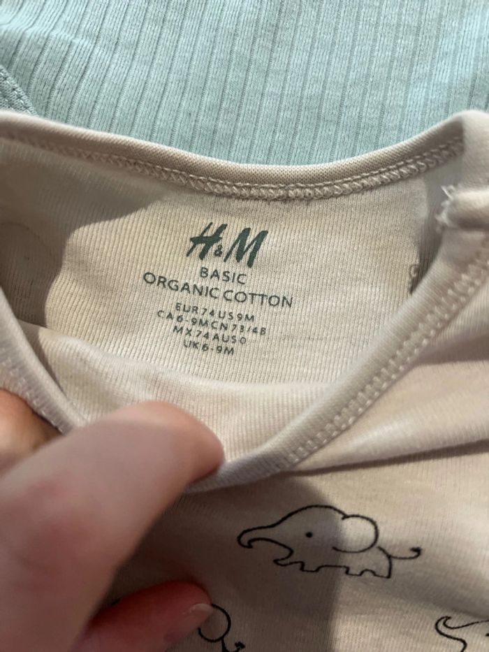 2 bodies h&m taille 6-9 mois bleu éléphant - photo numéro 1