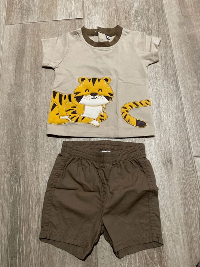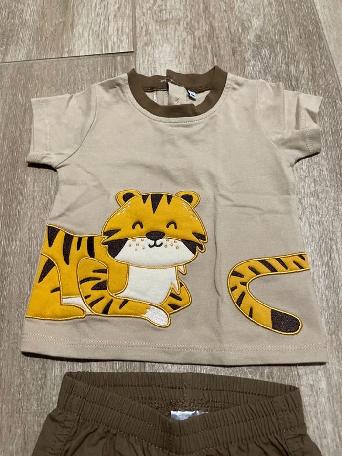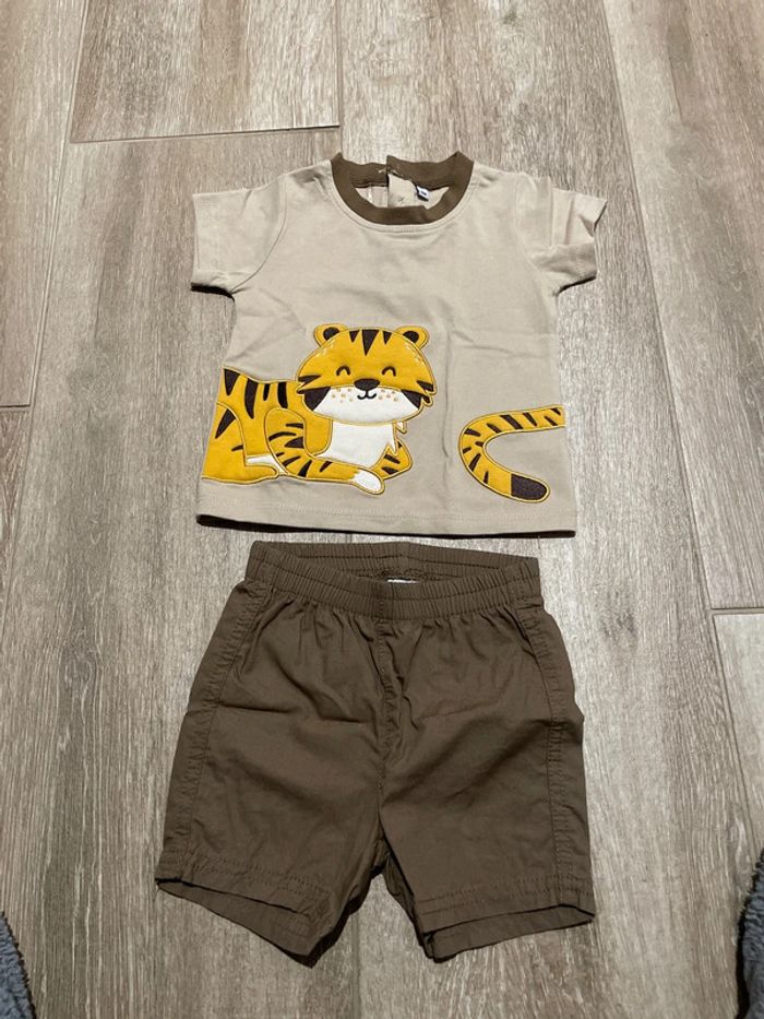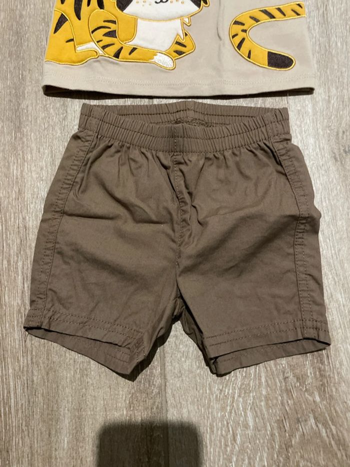 Ensemble short + t-shirt marron tigre 6 mois - photo numéro 1