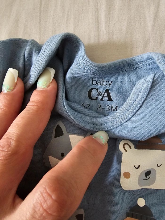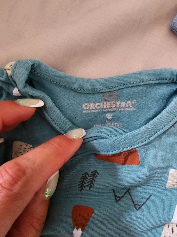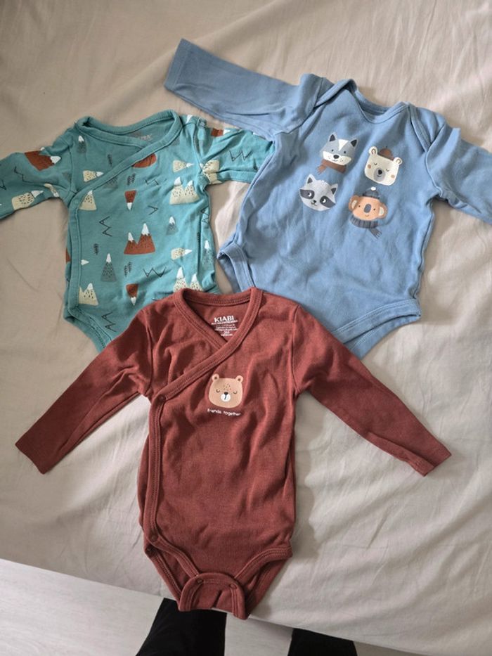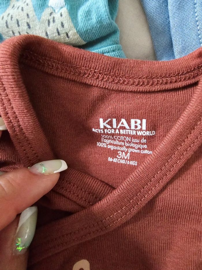 Bodys en excellent état achetée d occasion pour le marron et le bleu à gauche. Celui de droite neuf .taille 2.3 mois arque kiabi orchestra et c&a