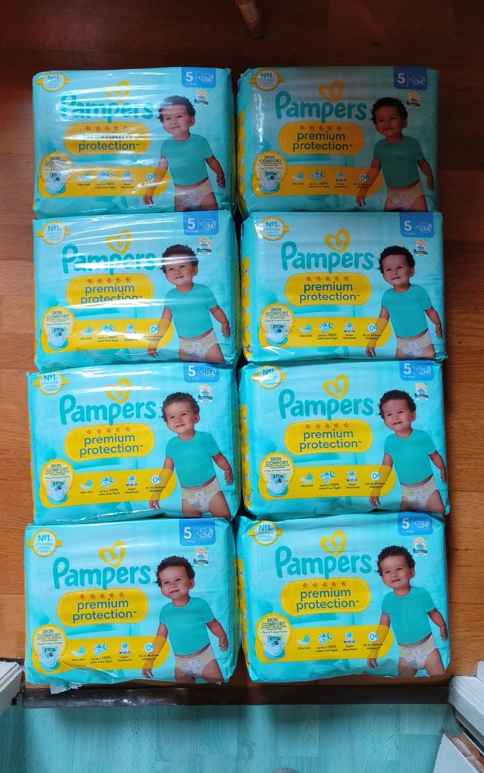 8 paquets de couches Pampers premium protection taille 5. Total de 272 couches