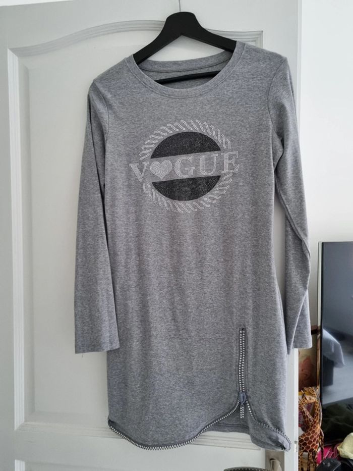 Tunique manche longue porter 2 fois en tres bon etat . Vogue taille unique jusqu'à un 42 . Gris