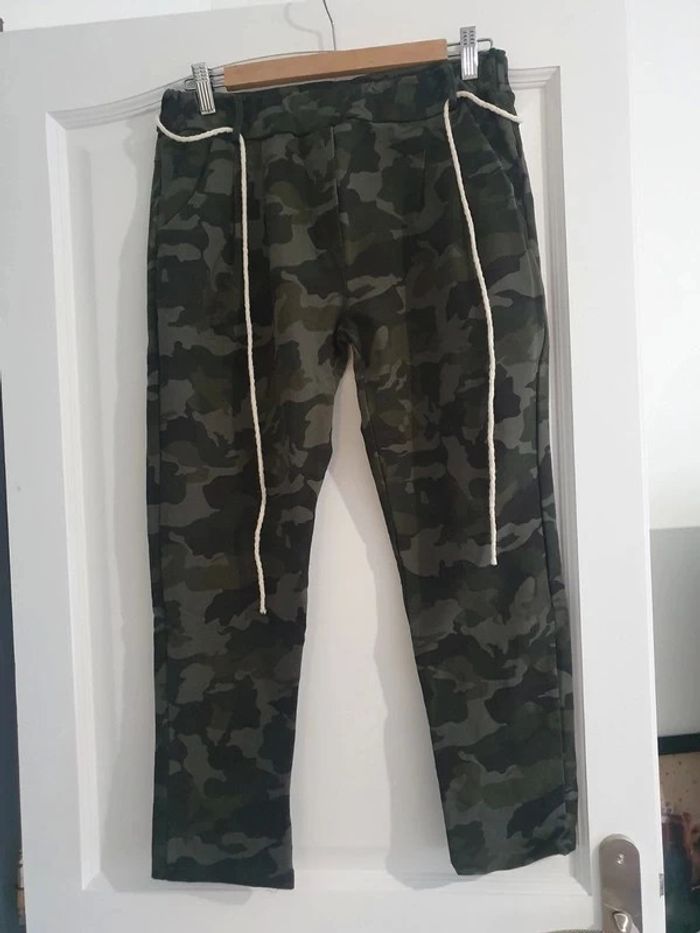 Pantalon chino militaire avec petite ceinture. Porter 2 fois . Taille unique jusqu au 42.