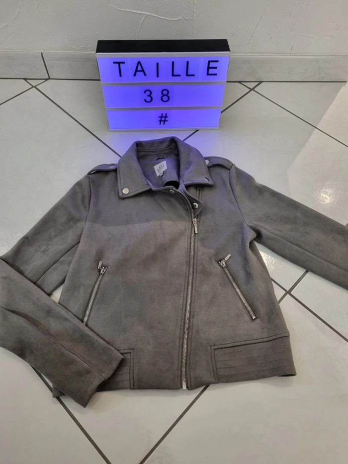 Veste en daim taille 38 couleur gris jamais porter . Toutz neuve