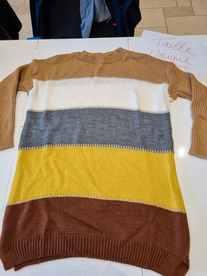 Pull tunique neuf taille unique jusqu'au 42 . Encore dans son emballage . Juste laver mais je n aime pas la matière . En très bon état