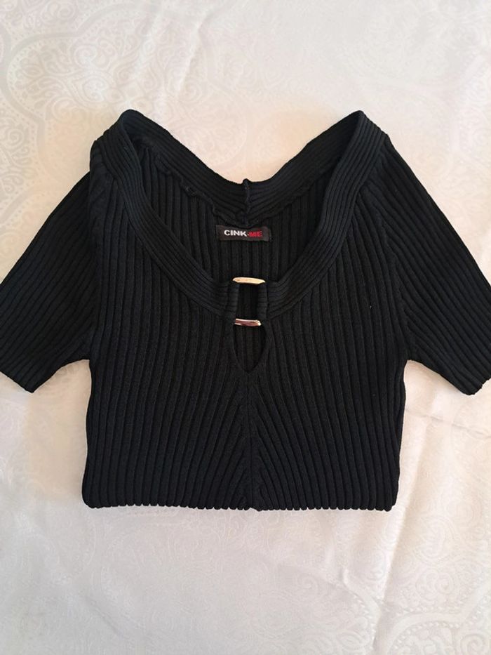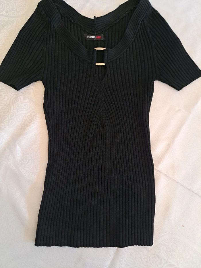 Haut noir moulant 36/38 décolleté extensible - photo numéro 1