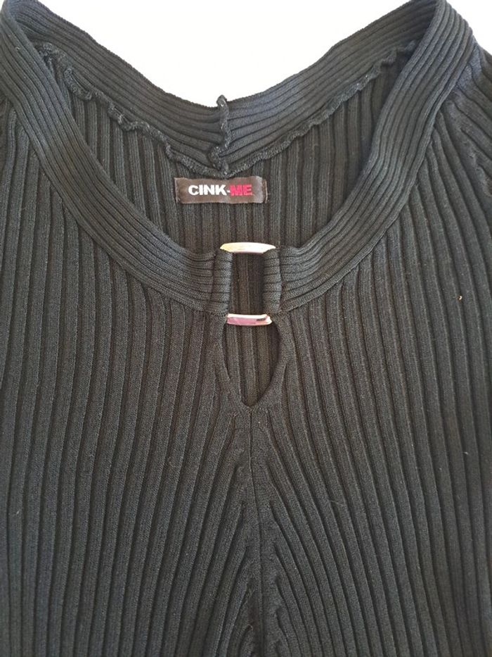Haut noir moulant 36/38 décolleté extensible - photo numéro 3