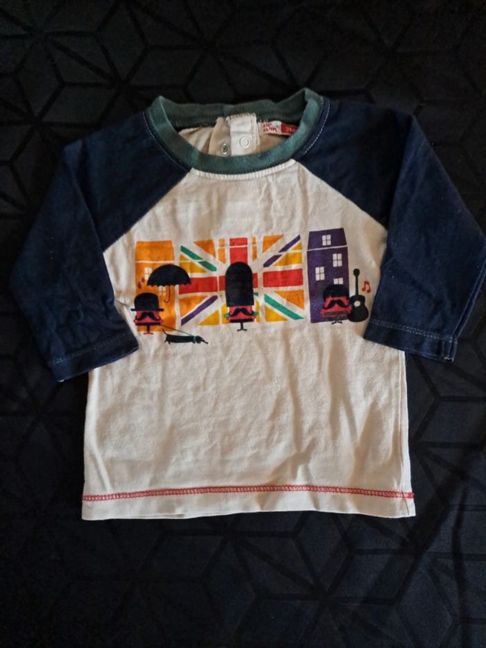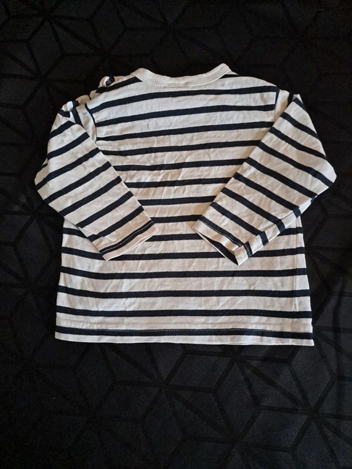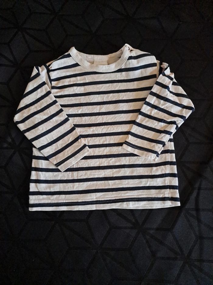 6 Tee-shirt manches longues. Quelques bouloches. Les pressions sont en très bon état Beige et bleu: dpam. Un petit point blanc au dessus de la guitare. Plutôt : disney 100%coton Rayure beige et blanc et le rayure blanc et noir: 100%coton. Je me souviens plus de la marque. Le bleu et gris est en bon état car beaucoup mis. Le pingouins beige en très bon état Dressing trier par taille Réduction par lot #sophythys_garçon_3mois