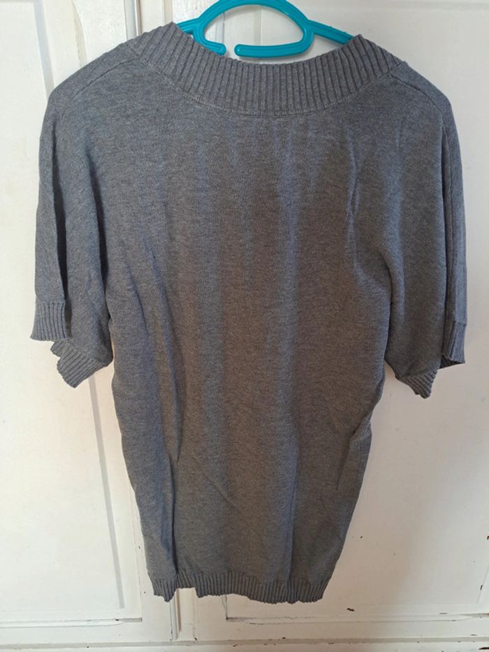 Pull gris col V manches courtes taille S 100%coton - photo numéro 3
