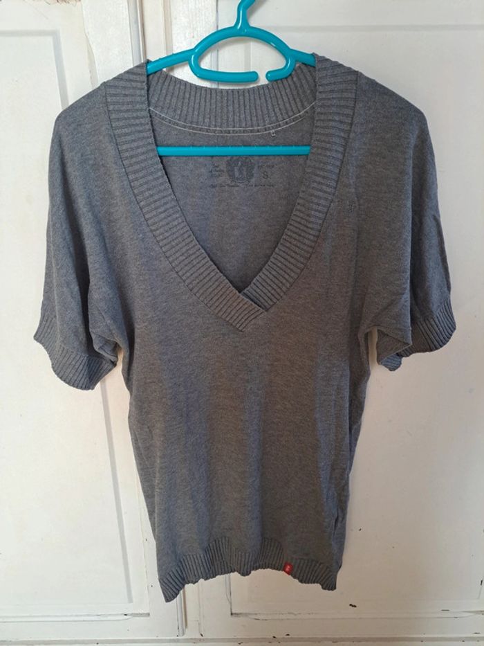 Pull gris col V manches courtes taille S 100%coton - photo numéro 1