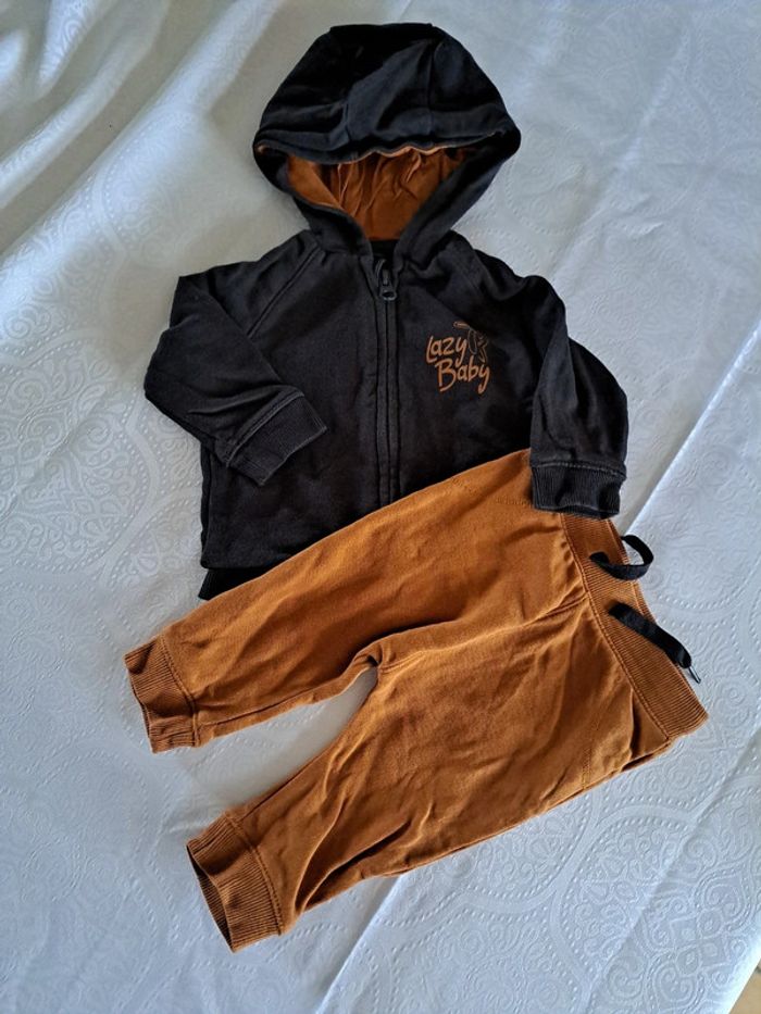 Ensemble veste et pantalon noir et camel 6 mois 100%coton - photo numéro 1