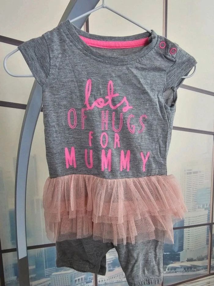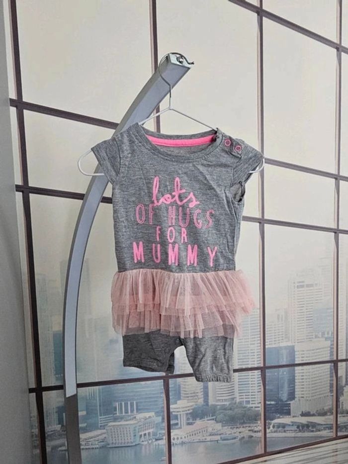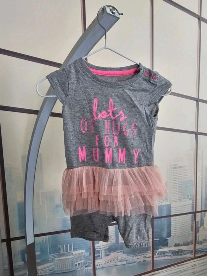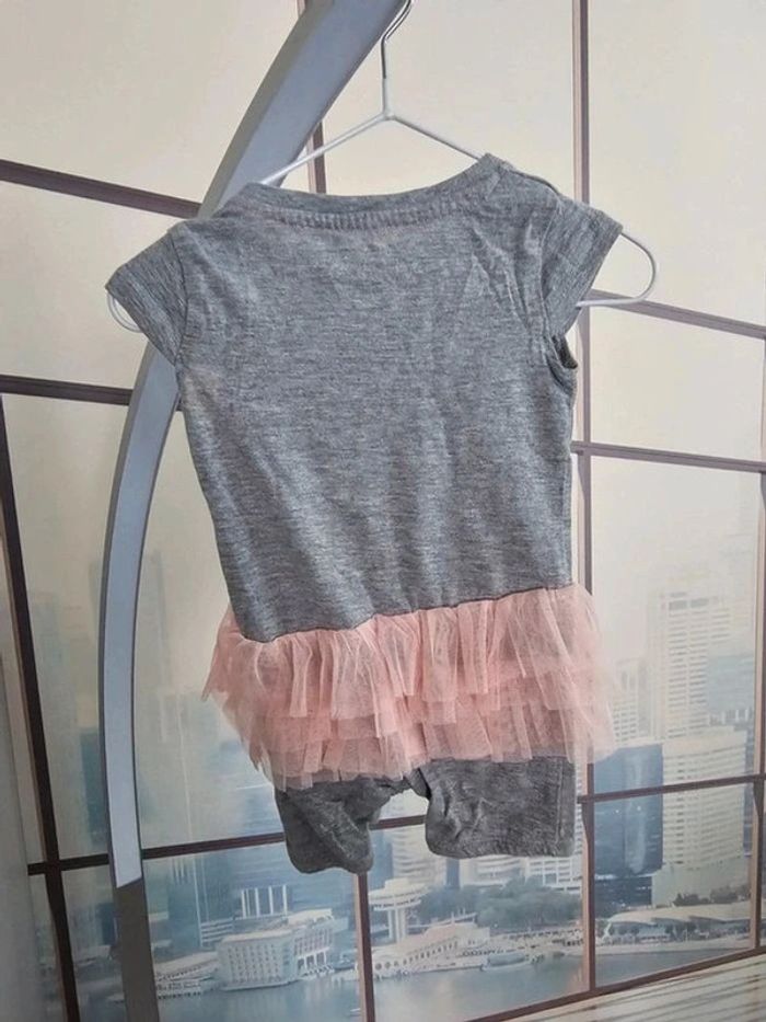 Body short imitation tutu taille 3/6 mois ( 62/68 cm) Gris et rose En très bon état