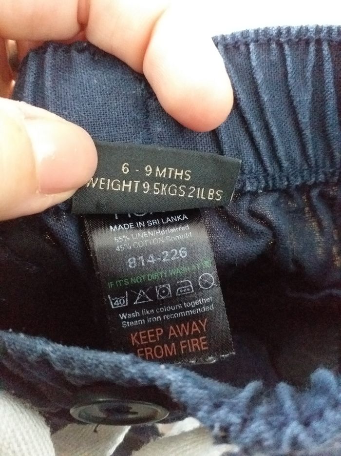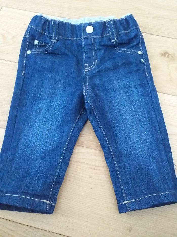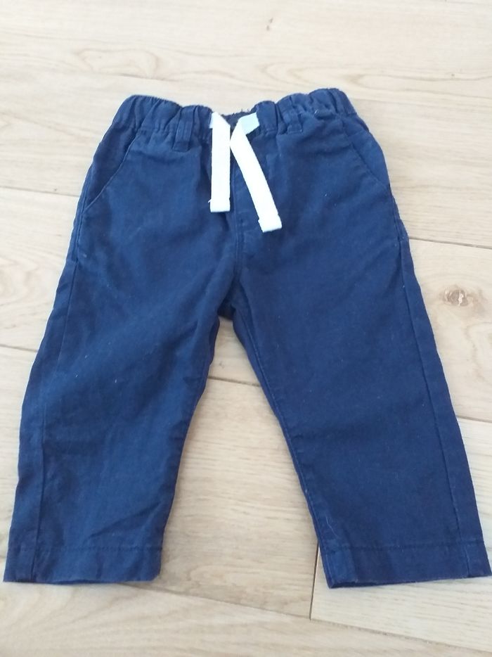 Lot de 3 pantalons de marques différentes, en très bon état: Jogging C&A indique 80cm mais taille petit. Non molletoné, pour la mi-saison Pantalon bleu marine en lin et coton, taille non ajustable. Indique 6-9 mois sur l'étiquette mais taille plus grand (74cm environ). Marque Next. Comporte un point orange sur le derrière (cf photo) Pantalon en jean comme neuf (porté une fois), taille ajustable (74 cm) de marque Obaibi
